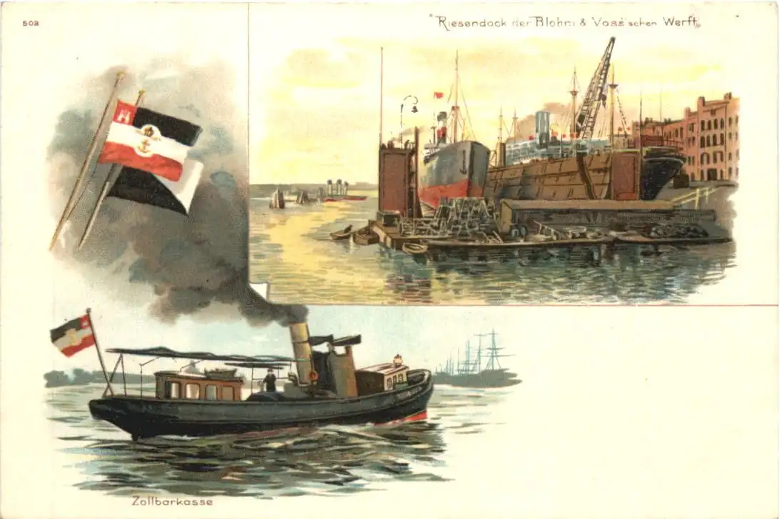 Hamburg - Riesendock der Blohm & Voss - Litho -783330