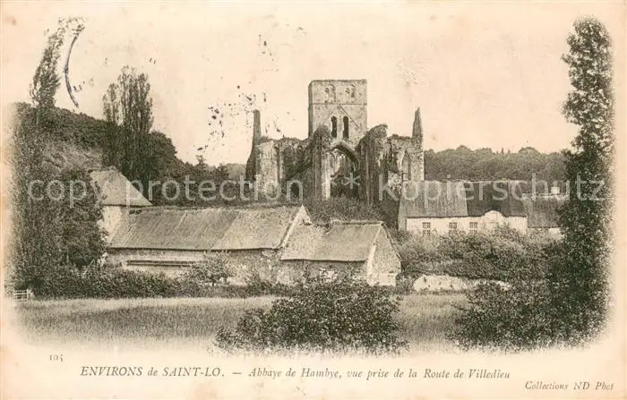 Hambye Abbaye vue prise de la Route de Villedieu Hambye postalisch gelaufen 1905 Erhaltung siehe scans [FriedD77] Frierer