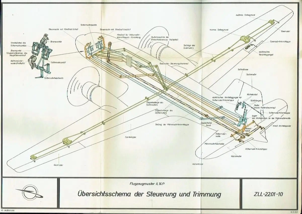 guter bis sehr guter Zustand, geringe Gebrauchs- und Alterungsspuren: Falttafeln teils mit kleinen Randblessuren - Seiten teils etwas eselsohrig - Einbände teils leicht verschmutzt - Band 3 mit Insektenfraßspuren an einigen Seitenrändern und vor allem an den Rändern der Vorsatzseiten, auch teils etwas eselsohrig und mit Abdrücken der Schrauben - eine Tafel in einem Falz ca. 5 cm eingerissen und rückseitig geklebt, Band 2 habe ich leider nicht Handbuch für das Mittelstrecken-Verkehrsflugzeug (Iljuschin) IL-14 P - Band 1 (Oktober 1957) - Technische Daten - Rumpf - Tragwerk - Leitwerk / Steuerung - Fahrwerk - Triebwerksanlage / Luftschraube - Ausrüstung - Flugbetriebsanleitung - Vorschriftsmäßige Prüfungen und Überholungsarbeiten - Band 3: Verbindliche Flugbetriebsanleitung, Ausgabe September 1963, als Überarbeitung und Außerkraftsetzung der Ausgabe 1958 - Band 4: Verbindliche Wartungsarbeiten der Zelle und der Ausrüstung des Flugzeuges, Ausgabe Januar 1963, in Außerkraftsetzung aller vorherigen Ausgaben, Kunstleder, ca. 13 x 18, 294 Seiten mit 37 Bildern und 9 Schema-Falttafeln / Band 3 und 4 sind Schraubdeckelordner mit loser-Blatt-Sammlung mit 49 und 86 Seiten