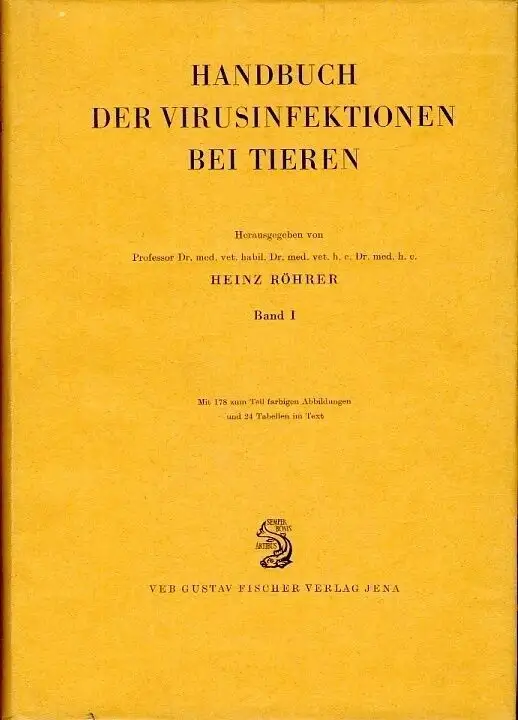 sehr guter Zustand, geringe Gebrauchs- und Alterungsspuren: alter Stempel auf dem Titel - Schutzumschlag gering defekt, Der Allgemeine Teil des auf fünf Bände konzipierten „Handbuches der Virusinfektionen bei Tieren enthält die Geschichte der Virusforschung, die Grundzüge einer Allgemeinen Pathologie und Pathogenese der Viruskrankheiten der Tiere, die Allgemeine Epizootiologie, die Allgemeine Morphologie der Viren, die Biochemie und Biophysik der Viren, die Virusvermehrung und Viruszüchtung, die quantitativeBestimmung der Viruskonzentration, die Hämagglutination durch Viren, die Komplementbindungsreaktion mit Viren. Ein umfangreiches Bildmaterial erhöht den didaktischen Wert dieses Standardwerkes.", Leinen, 867 Seiten mit 178 Bildern und 24 Tabellen