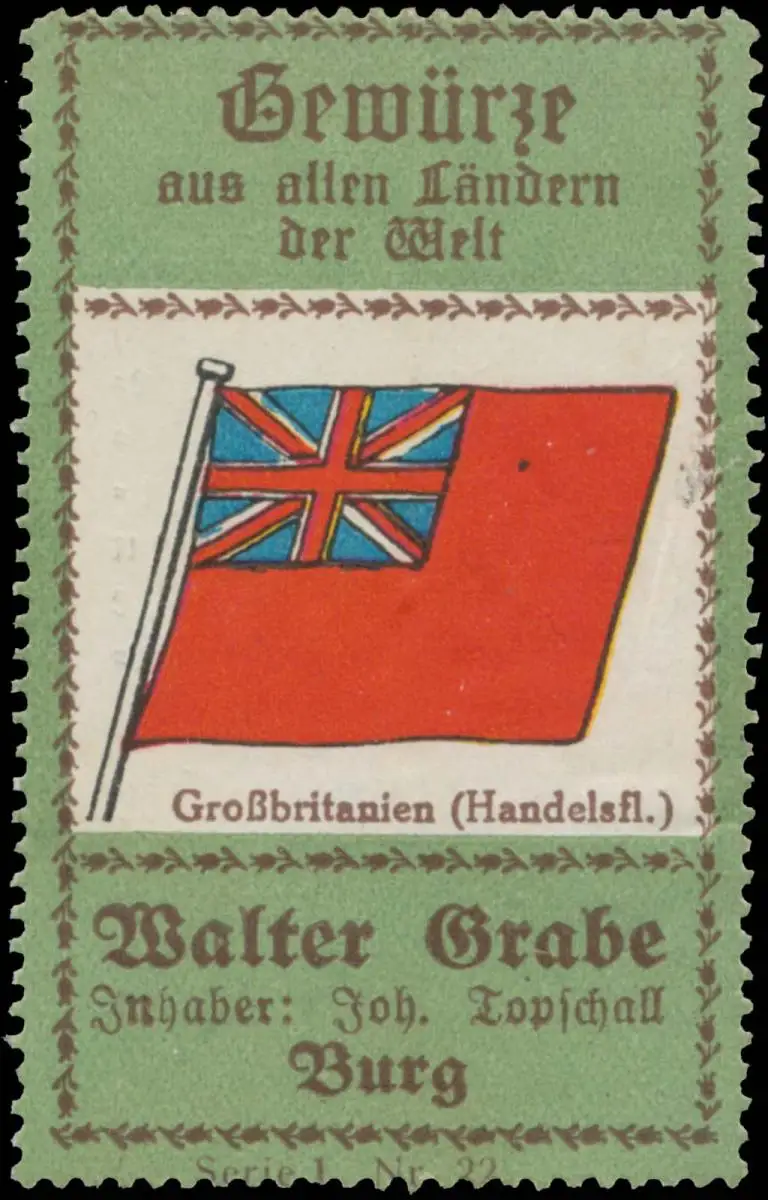 Gewürze aus allen Ländern der Welt, Drogerie Walter Grabe, Inhaber: Joh. Topschall, Serie 1, Nr. 22, Größe/Zustand: 7x4 , leicht beschädigt, Original alte Reklamemarke die seinerzeit für die Werbung benutzt wurde