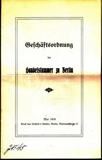 Titel: Geschäftsordnung der Handelskammer zu Berlin ( Mai 1919 )