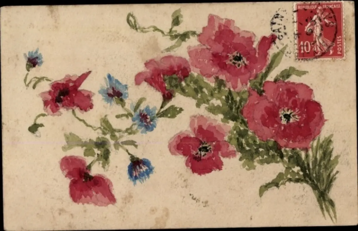 Handgemalt Ak Blumen, Mohn