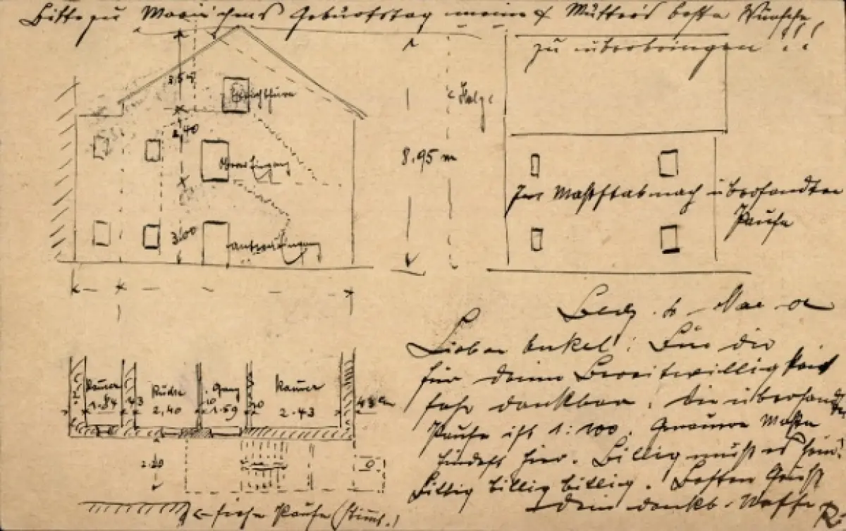 Handgemalt Ak Blunzendorf Znaim, Bludenz, Querschnit eines Hauses, Grundriss