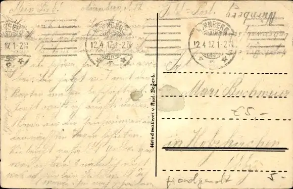 Zustand, siehe Scan, gelaufen, 1917 - ca 14 cm X 9 cm