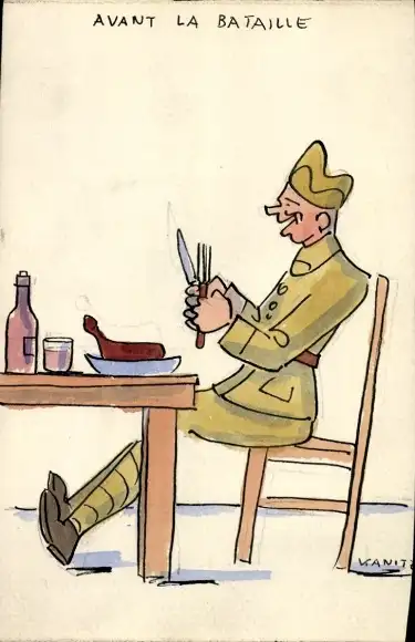 Handgemalt Ak Französischer Soldat beim Essen
