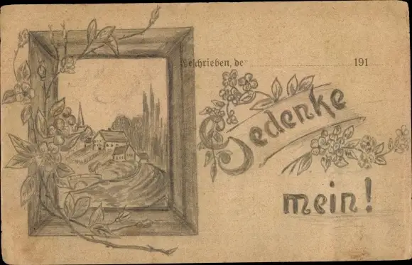 Handgemalt Ak Gedenke mein, Landschaft, Ortschaft
