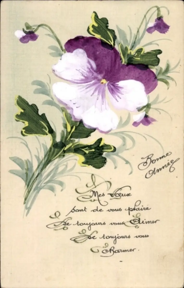Handgemalt Ak Glückwunsch Neujahr, Stiefmütterchen
