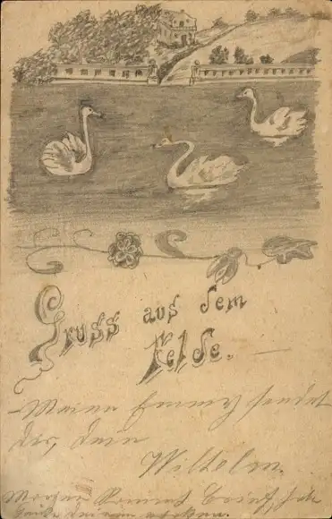 Handgemalt Ak Gruß aus dem Felde, Schwäne
