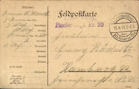 Zustand, siehe Scan, gelaufen, 1915 - ca 9 cm X 14 cm