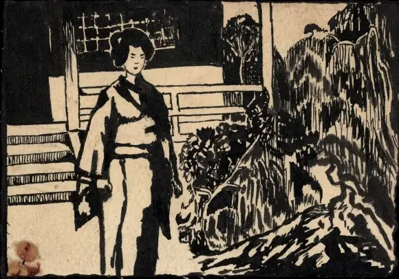 Handgemalt Ak Japan, Japanerin im Kimono