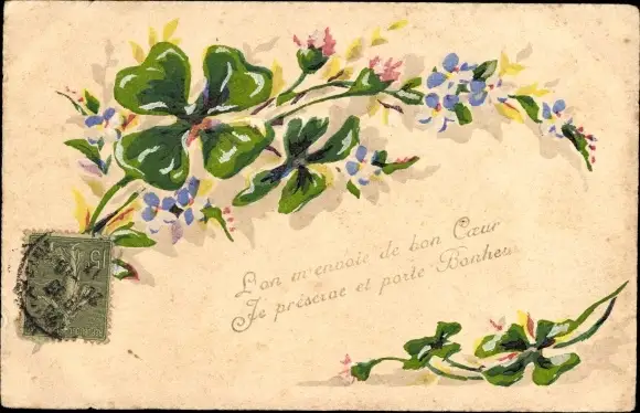 Handgemalt Ak Kleeblätter und Blumen