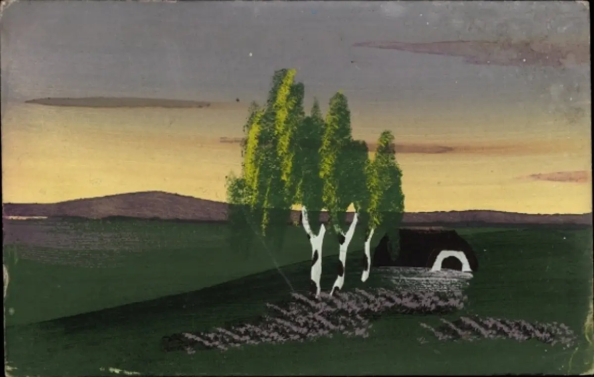 Handgemalt Ak Landschaft, Birken