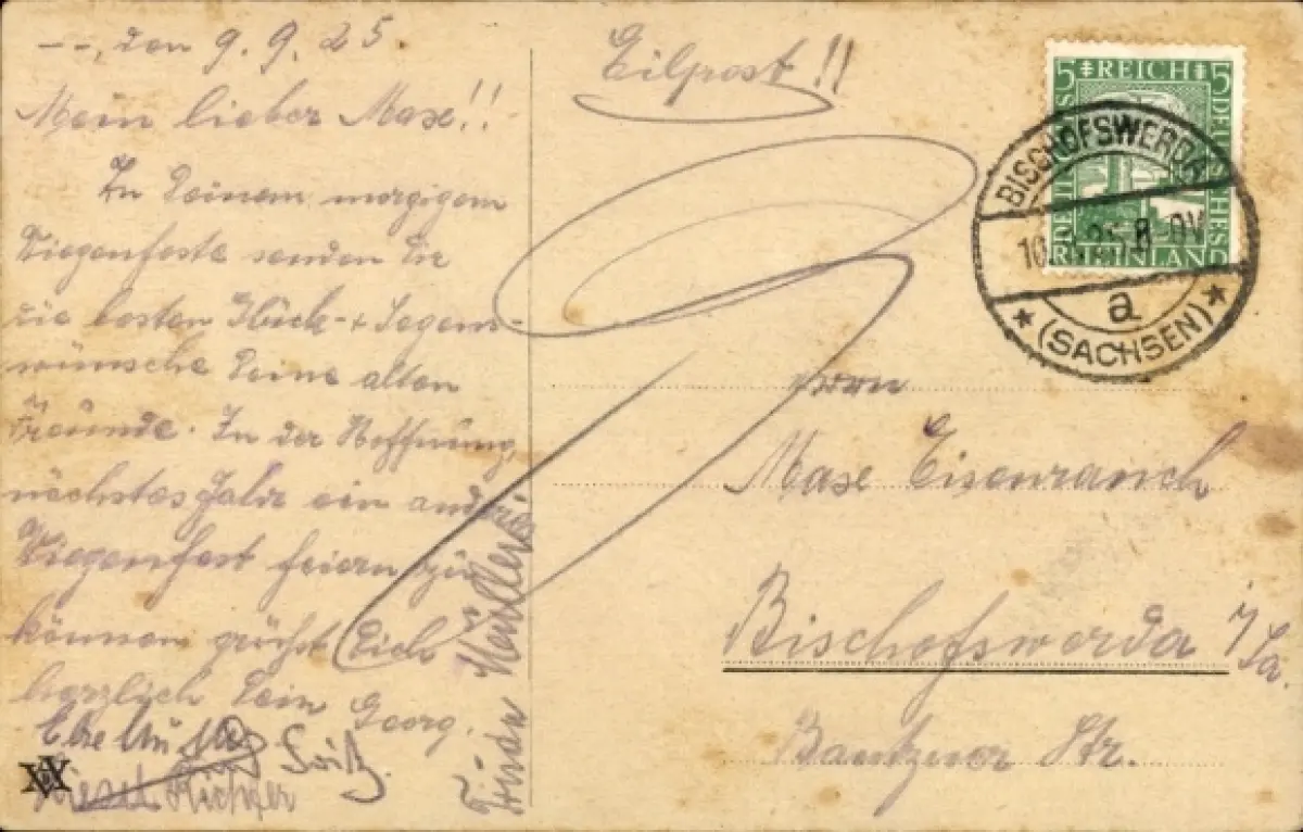 Zustand, siehe Scan, gelaufen, 1925 - ca 14 cm X 9 cm