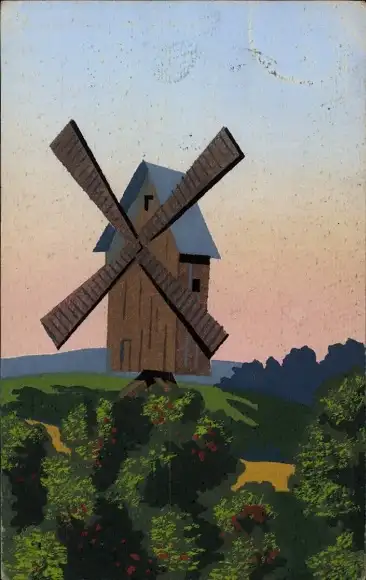 Handgemalt Ak Landschaft, Windmühle