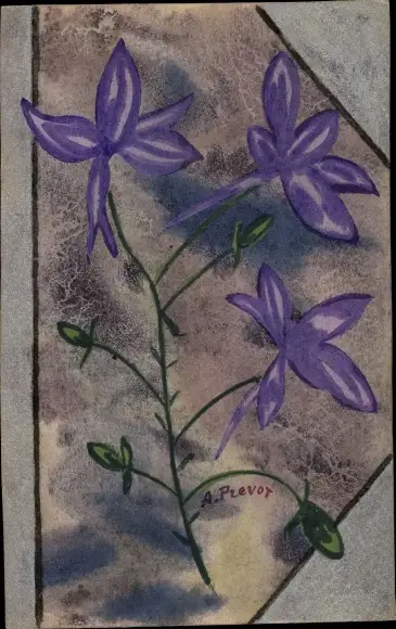 Handgemalt Ak Prevot, A., Blume mit lila Blüten