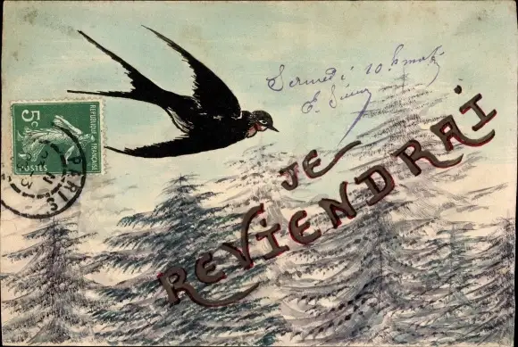 Handgemalt Ak Schwalbe, Waldpartie, Tannenbäume