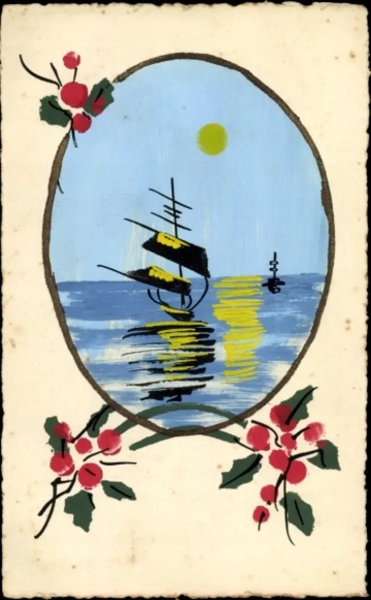 Ansichtskarte, Postkarte, Hafen, Schiffe, Boote, Dampfer, Boot