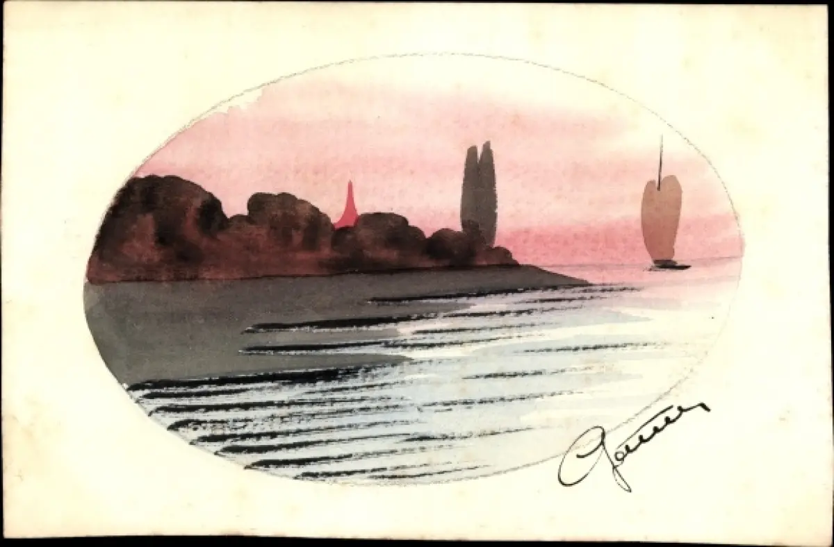 Handgemalt Ak Segelboot auf dem Wasser