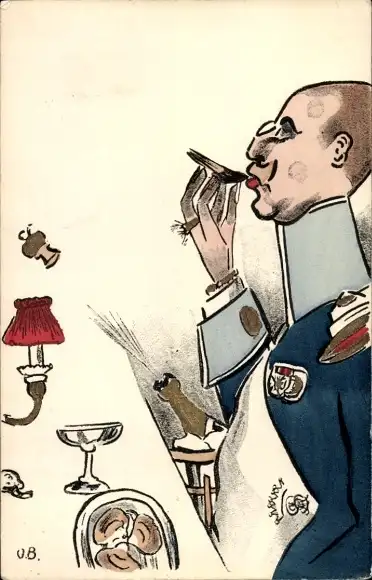 Handgemalt Ak Soldat, Karikatur, Festessen, I WK