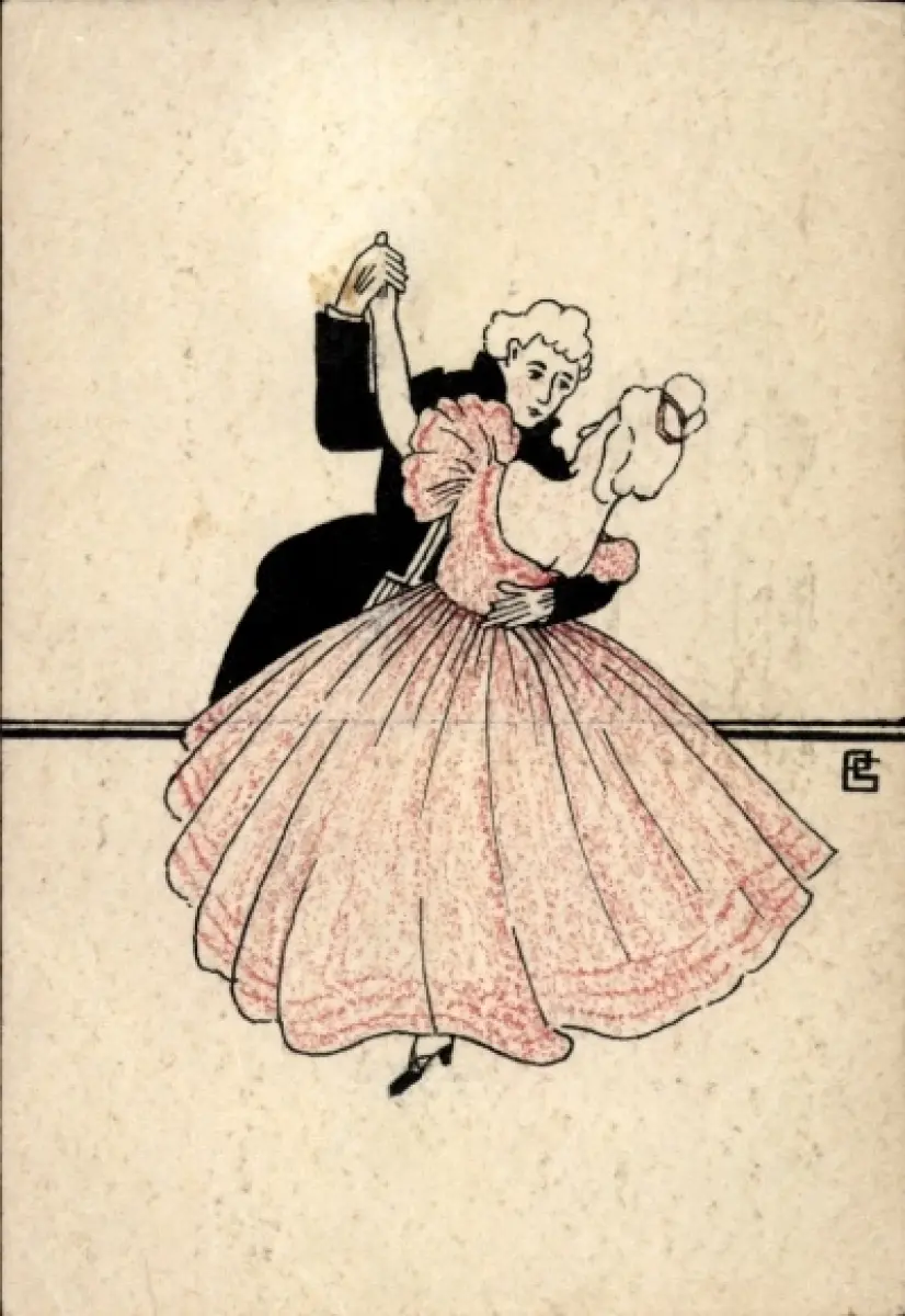 Handgemalt Ak Tanzpaar