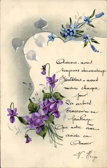 Handgemalt Ak Veilchen udn Vergissmeinnichtblüten
