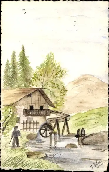 Handgemalt Ak Wassermühle