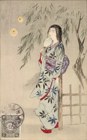 Handgemalt Künstler Ak Frau in japanischer Tracht