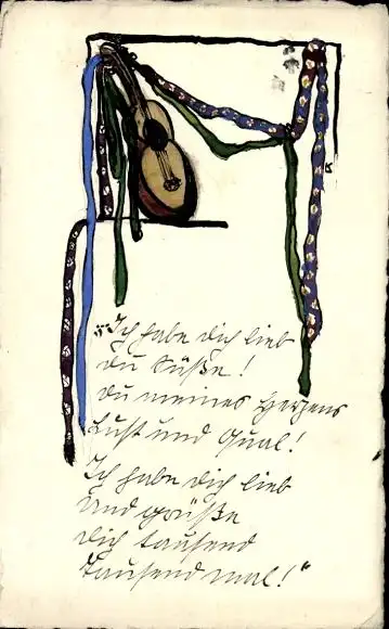 Handgemalt Künstler Ak Gitarre, Bändchen