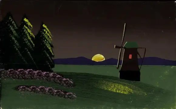 Ansichtskarte, Postkarte, Windmühle, Windmühlen, Künstler, Maler, Bildhauer