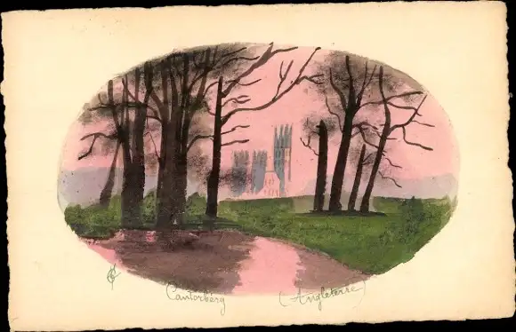 Handgemalt Künstler Ak Schloss in England, Wald, Bäume