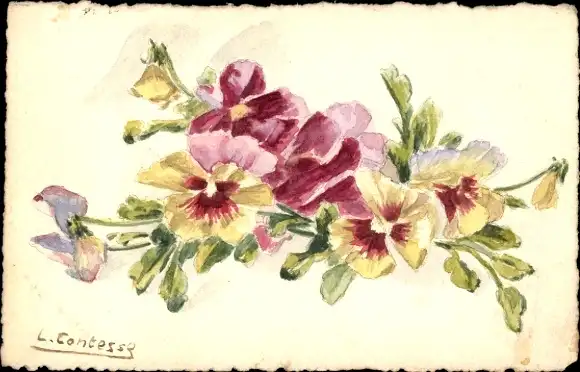 Handgemalt Künstler Ak Stiefmütterchen, Blumen