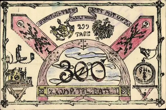 Handgemalt Regiment Ak 2. Komp. Tel. Batl., Parle Heimat, 299 Tage