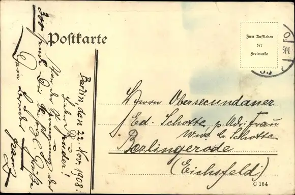 Zustand, siehe Scan, gelaufen, 1908 - ca 14 cm X 9 cm