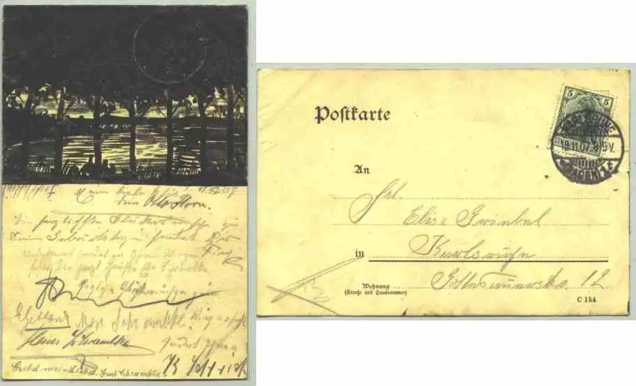 Handgemalte Karlsruhe 1907 ( intern : 1016426 Artikelbeschreibung : Siehe Scan. Weitere Infos : Handgemalte Ansichtskarte (Tuschezeichnung ?) von 1907. Landschaftsmotiv. Beschrieben u. postalisch gelaufen mit Briefmarke u. Stempel von Karlsruhe 1907