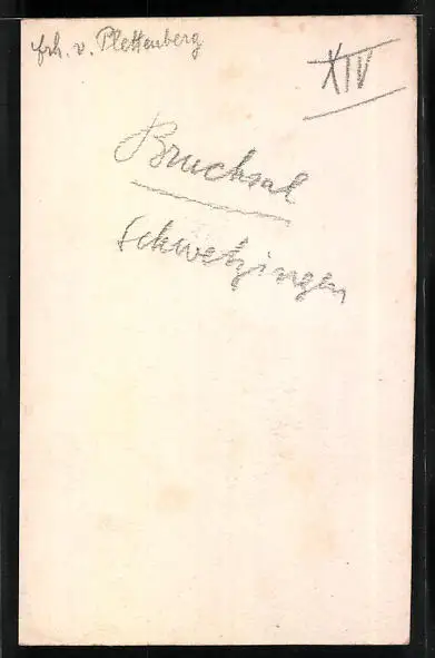 Personenbezogene Daten auf der Rückseite der Karte wurden durch blauen Textmarker unkenntlich gemacht. Die blauen Stellen sind auf die Vorderseite durchgeweicht und wirken sich negativ auf das Postkartenfoto aus