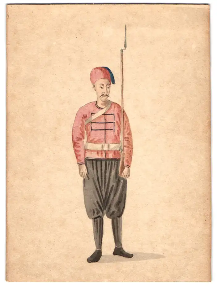Handzeichnung Osmanischer Soldat in Uniform mit Gewehr, Türke