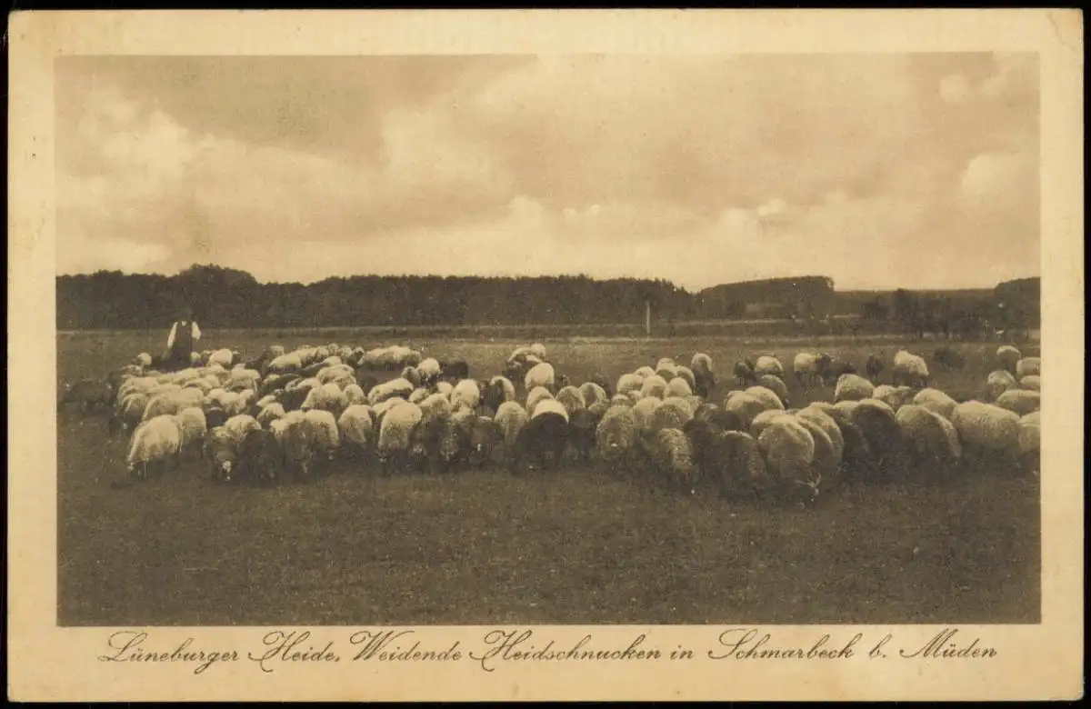 Hann. Münden Lüneburger Heide, Weidende Heidschnucken in Schmarbeck 1918