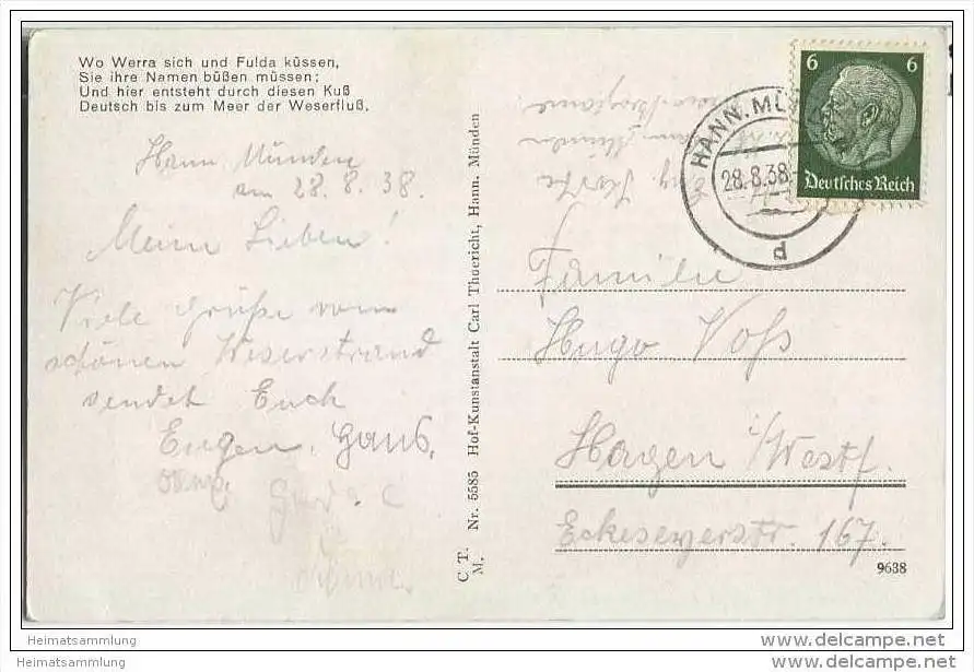 Hann. Münden - Oberweser - Der Weserstein - Verlag Carl Thoericht Hann. Münden (E37292) gel. 1938