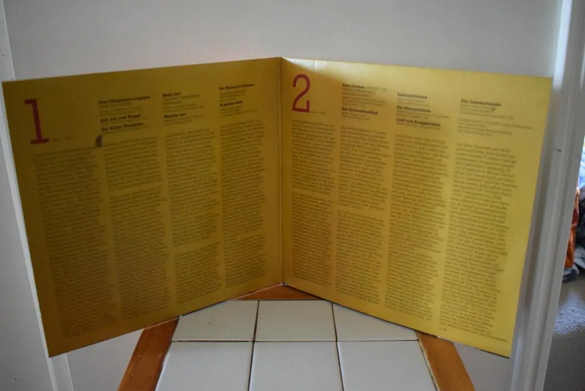 Cover mit leichten umlaufenden Gebrauchspuren , im Bereich Einschub etwas stärker , LP mit sehr geringen Gebrauchspuren knapp unterhalb NM Niveau , spielt erstklassig .