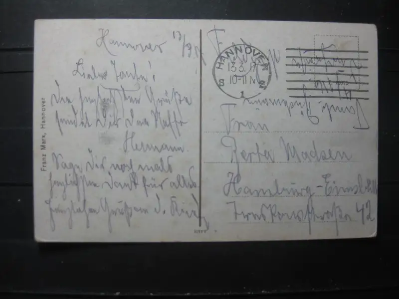ca. 1917; Unschärfen, Spiegelungen, Verbiegungen, Verwerfungen sind allein durch das abfotografieren bedingt; Karte ist beidseitig abgebildet, Erhalt siehe Scan; ist das Foto qualitativ nicht aussagekräftig genug, kann es besseres Foto angefordert werden. Rückgabe bei Karten ist generell ausgeschlossen.