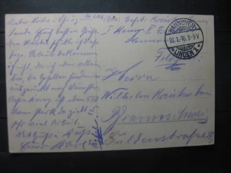 ca. 1916; Unschärfen, Spiegelungen, Verbiegungen, Verwerfungen sind allein durch das abfotografieren bedingt; Karte ist beidseitig abgebildet, Erhalt siehe Scan; ist das Foto qualitativ nicht aussagekräftig genug, kann es besseres Foto angefordert werden. Rückgabe bei Karten ist generell ausgeschlossen.