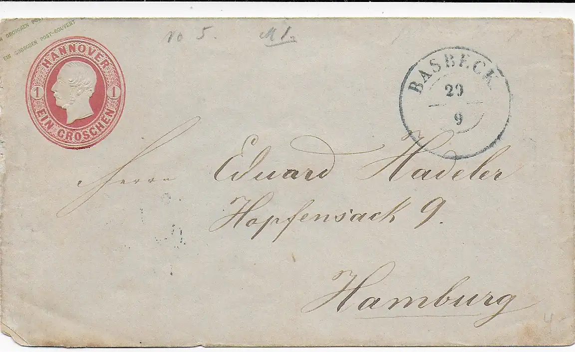 Hannover: Basbeck nach Hamburg, Ganzsache