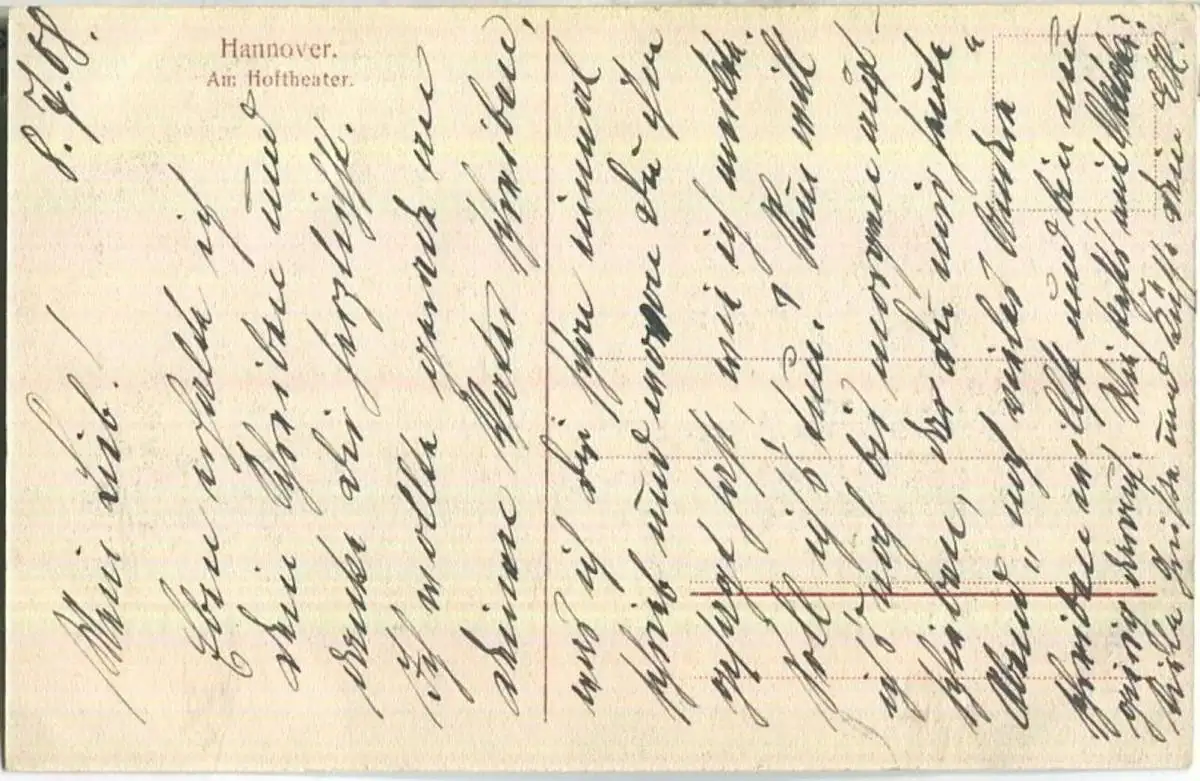 Hannover - Hoftheater - Rückseite beschrieben 1908