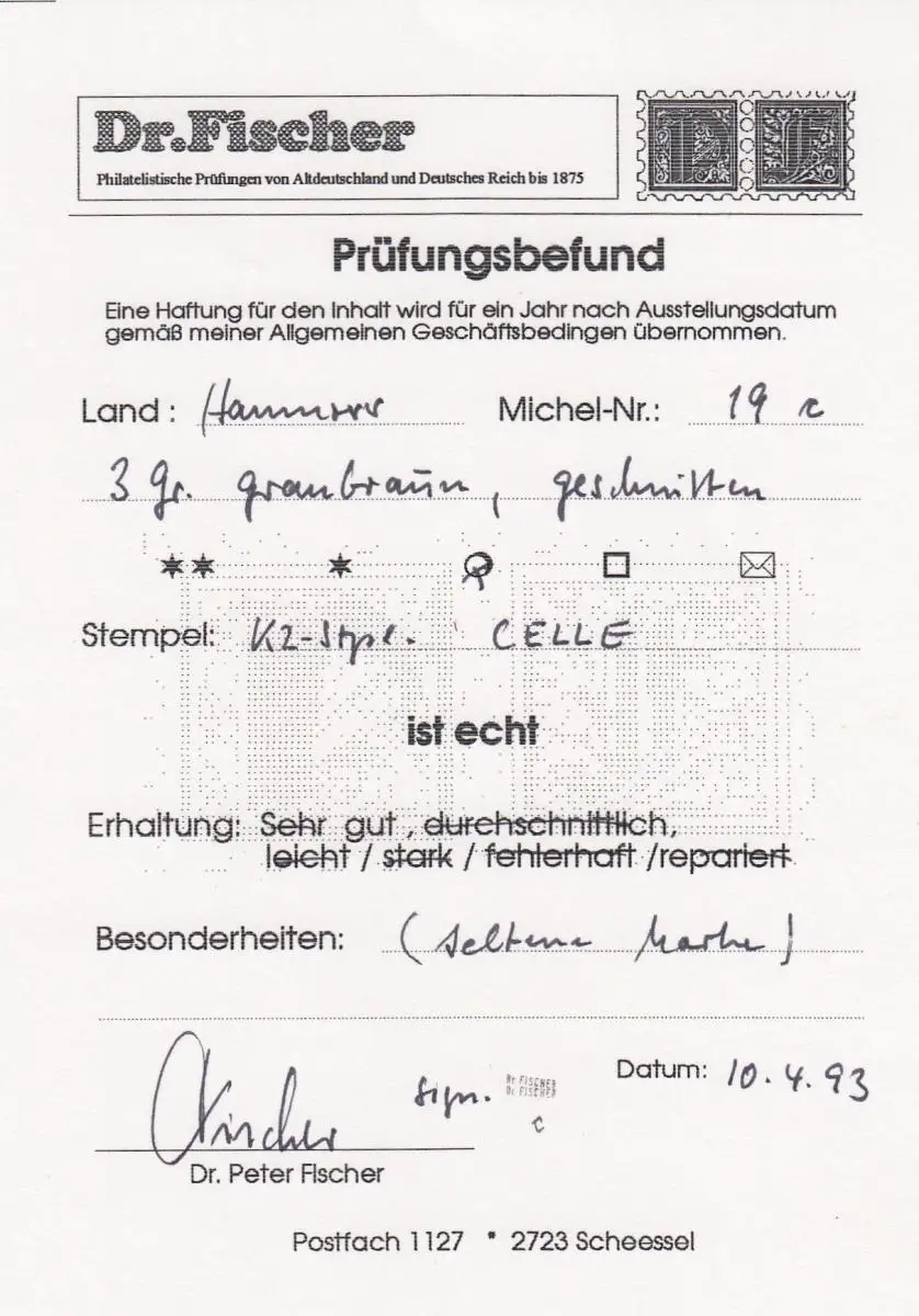 Hannover: MiNr. 19c, Stempel Celle