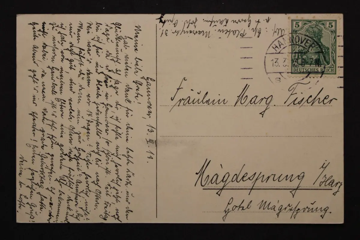 Karte gelaufen, etwas bestoßen, leicht fleckig