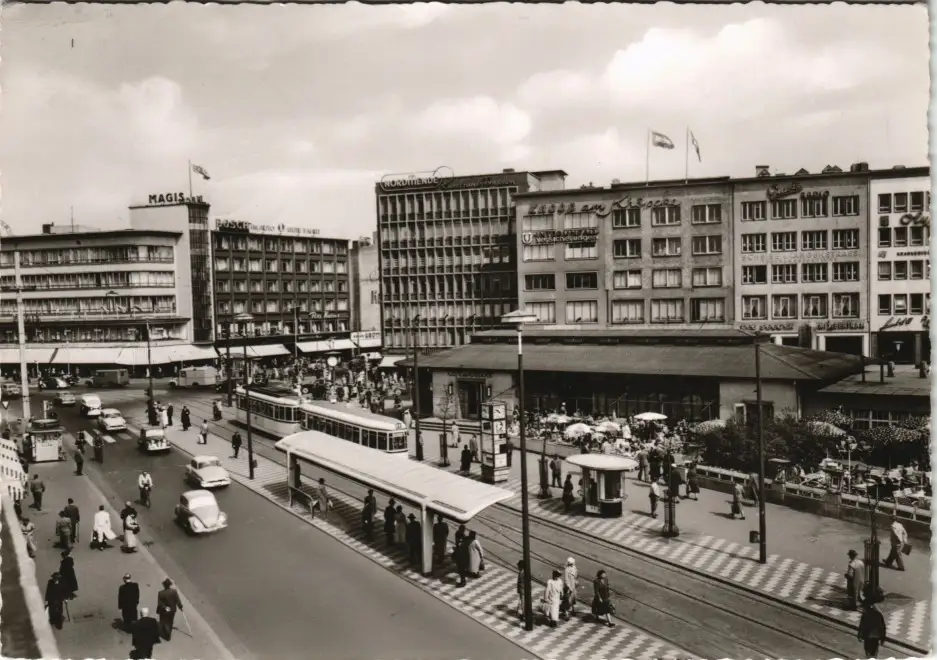 Hannover Straßenbahn Haltestelle, Zentrum, Autos Auto-Verkehr 1958