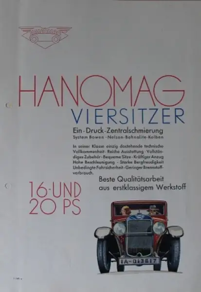 Hanomag Modellprogramm 1931 Viersitzer Automobilprospekt (3815)