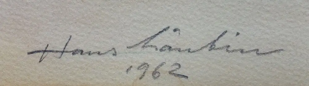 Aquarell a./Bütten, 62 x 43, 8 cm. Rechts unten mit Bleistift signiert und datiert „1962“.