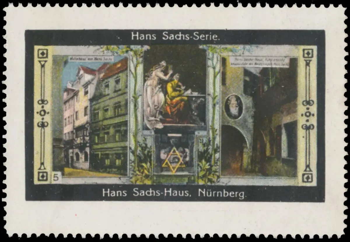 Hans Sachs-Serie, Bild 5, Größe/Zustand: 5x7 , guter Zustand, Original alte Reklamemarke die seinerzeit für die Werbung benutzt wurde